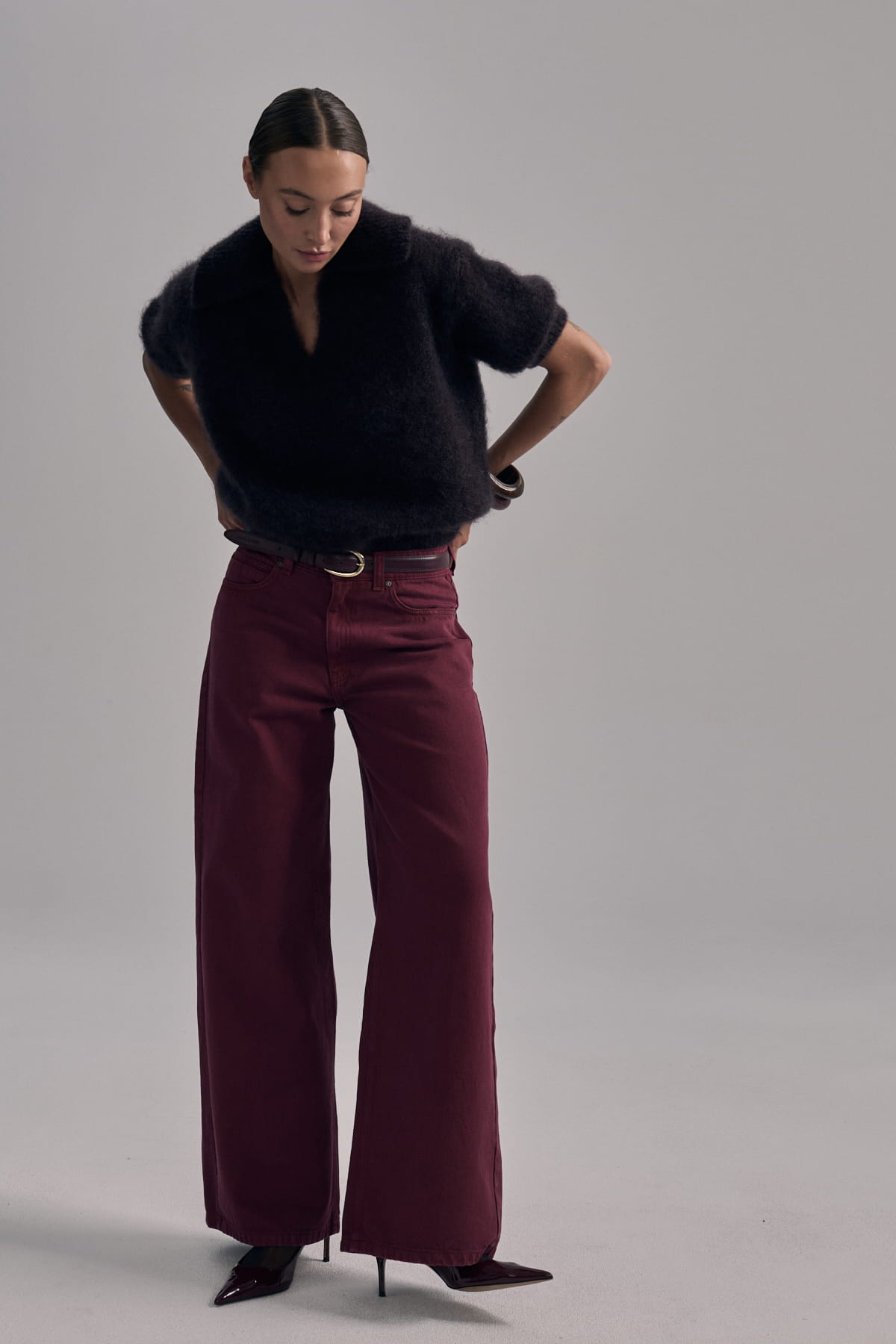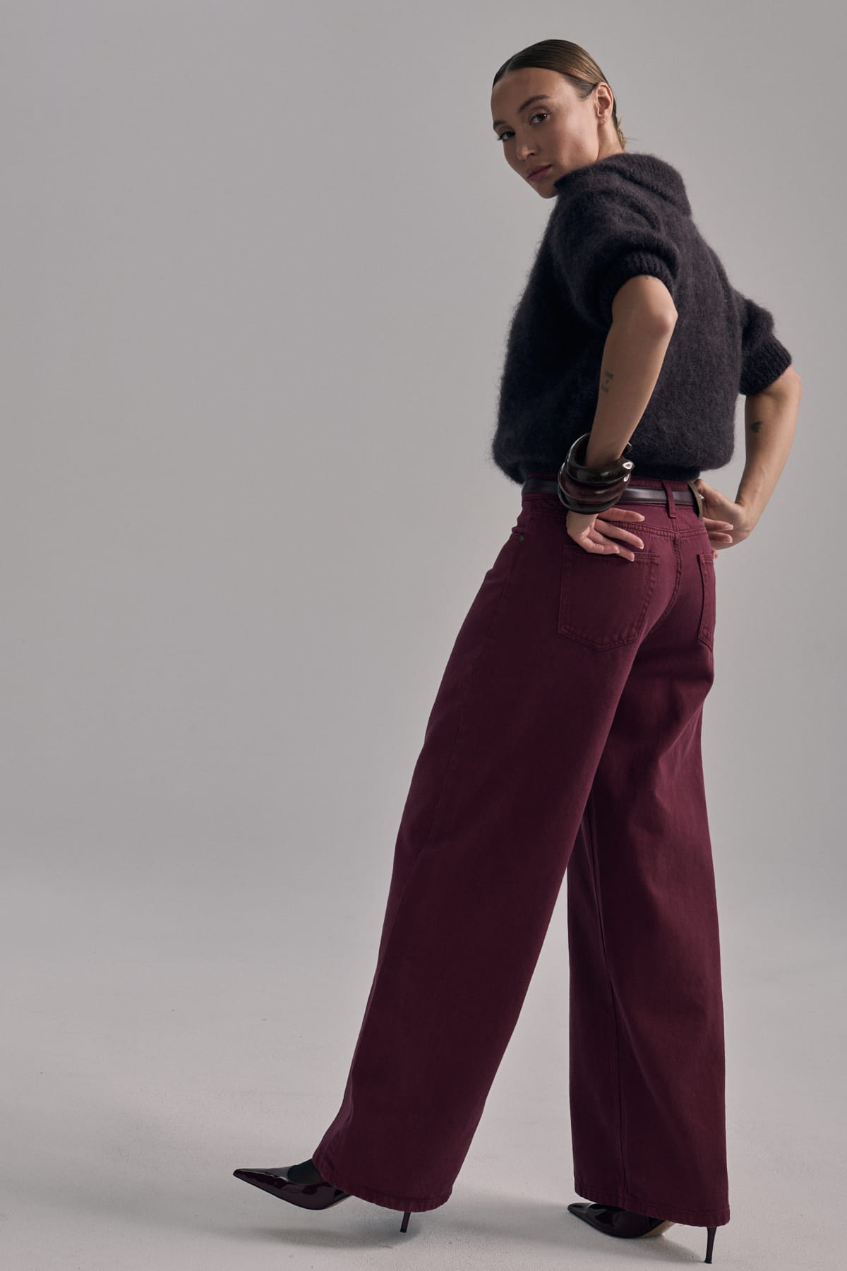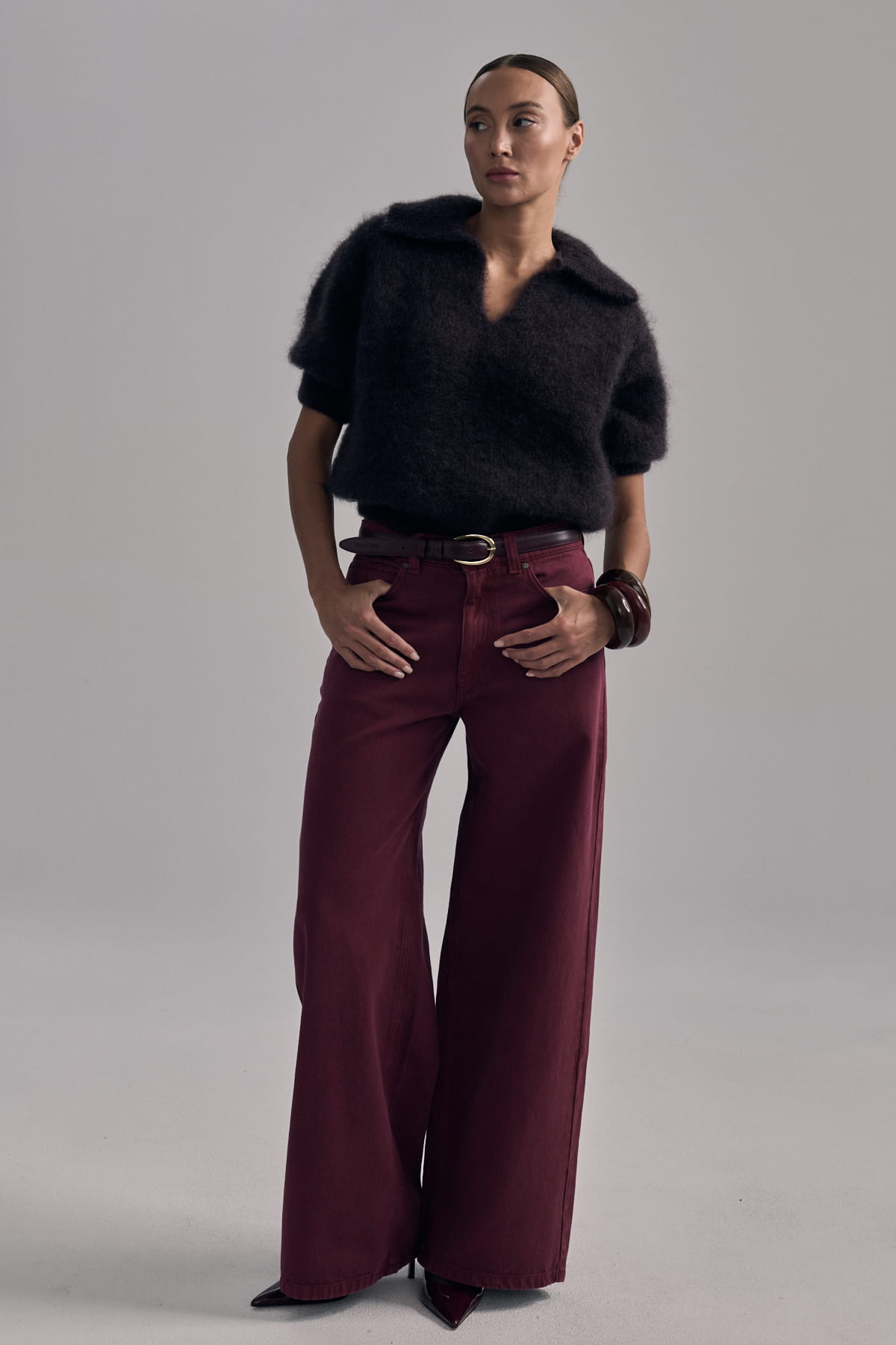 To spodnie jeansowe o fasonie wide leg, które charakteryzują się prostymi, szerokimi nogawkami o równym wykończeniu. Mają wysoki stan, dzięki czemu pięknie podkreślają talię i modelują sylwetkę. Klasyczna konstrukcja z pięcioma kieszeniami – dwiema z przodu, małą kieszonką typu watch pocket oraz dwiema z tyłu – nadaje im ponadczasowy charakter. Zapięcie na guzik i zamek błyskawiczny sprawia, że spodnie są wygodne w codziennym użytkowaniu. To uniwersalny model, który świetnie sprawdzi się w wielu stylizacjach – zarówno tych swobodnych, jak i bardziej eleganckich, gdy zestawimy je z marynarką lub koszulą. Idealne dla osób, które cenią sobie komfort, klasykę i modowy luz w jednym.