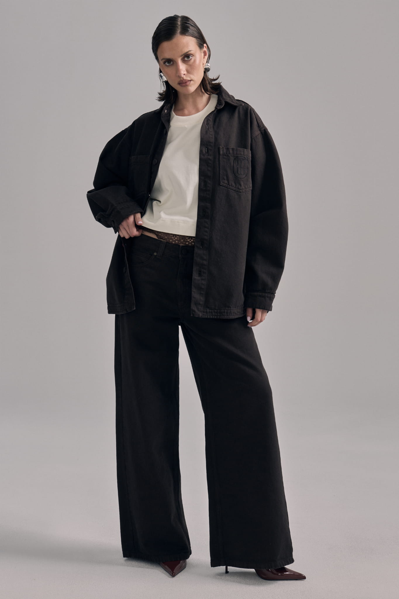 To spodnie jeansowe o fasonie wide leg, które charakteryzują się prostymi, szerokimi nogawkami o równym wykończeniu. Mają wysoki stan, dzięki czemu pięknie podkreślają talię i modelują sylwetkę. Klasyczna konstrukcja z pięcioma kieszeniami – dwiema z przodu, małą kieszonką typu watch pocket oraz dwiema z tyłu – nadaje im ponadczasowy charakter. Zapięcie na guzik i zamek błyskawiczny sprawia, że spodnie są wygodne w codziennym użytkowaniu. To uniwersalny model, który świetnie sprawdzi się w wielu stylizacjach – zarówno tych swobodnych, jak i bardziej eleganckich, gdy zestawimy je z marynarką lub koszulą. Idealne dla osób, które cenią sobie komfort, klasykę i modowy luz w jednym.