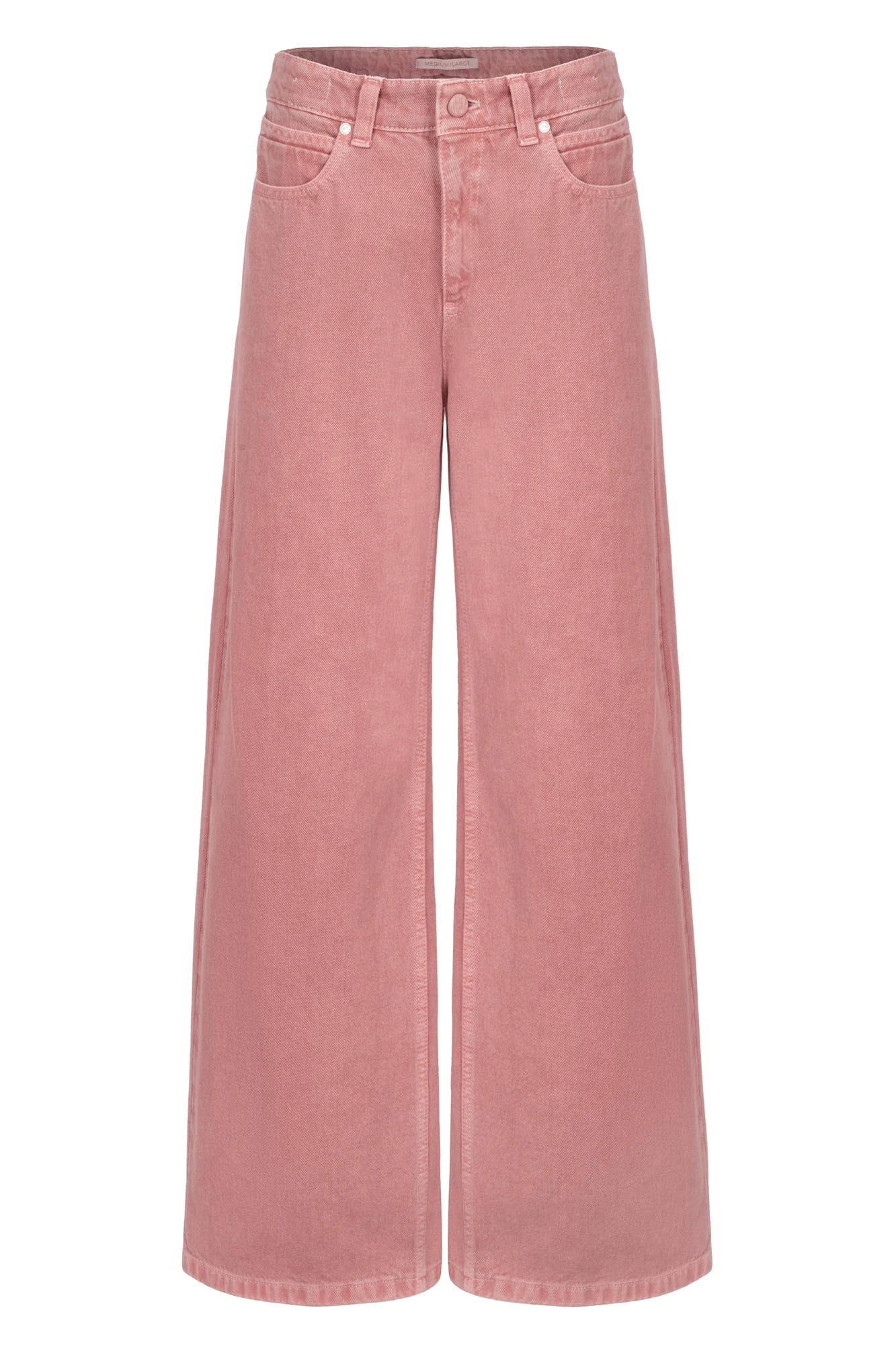 To spodnie jeansowe o fasonie wide leg, które charakteryzują się prostymi, szerokimi nogawkami o równym wykończeniu. Mają wysoki stan, dzięki czemu pięknie podkreślają talię i modelują sylwetkę. Klasyczna konstrukcja z pięcioma kieszeniami – dwiema z przodu, małą kieszonką typu watch pocket oraz dwiema z tyłu – nadaje im ponadczasowy charakter. Zapięcie na guzik i zamek błyskawiczny sprawia, że spodnie są wygodne w codziennym użytkowaniu. To uniwersalny model, który świetnie sprawdzi się w wielu stylizacjach – zarówno tych swobodnych, jak i bardziej eleganckich, gdy zestawimy je z marynarką lub koszulą. Idealne dla osób, które cenią sobie komfort, klasykę i modowy luz w jednym.