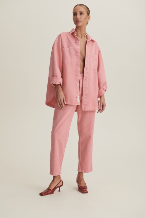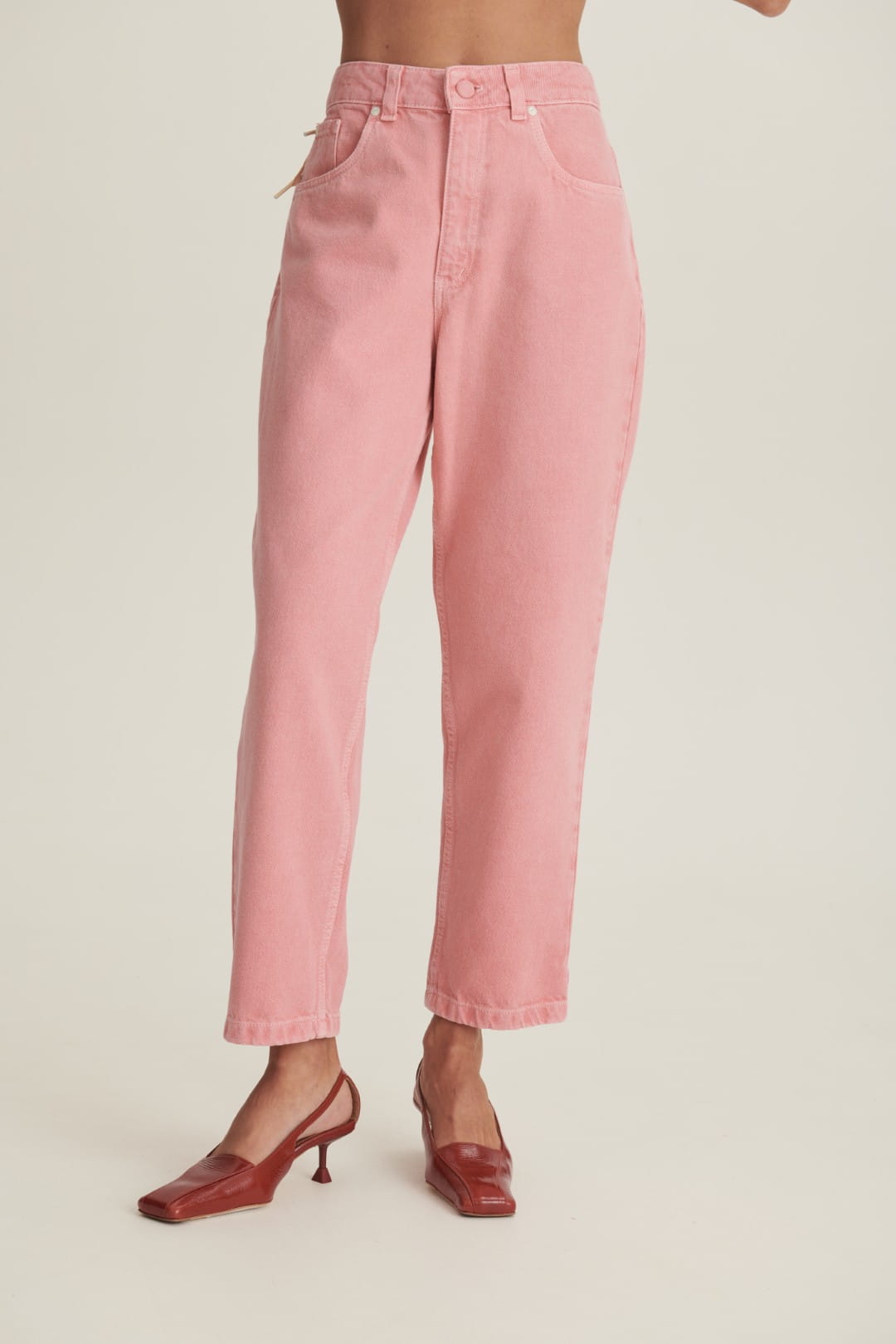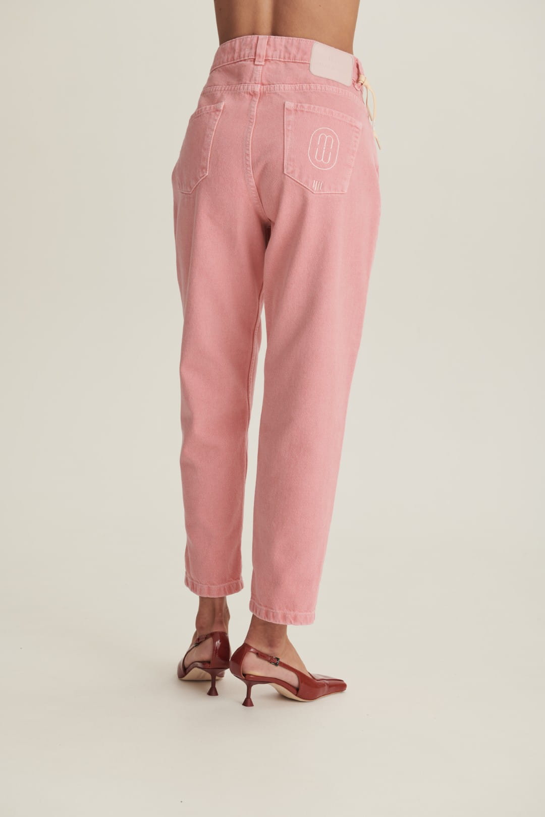 Te spodnie mom fit to klasyczny model inspirowany stylem lat 90. Charakteryzują się luźniejszym krojem w okolicy bioder i ud, z lekko zwężającymi się nogawkami. Nogawki zostały podwinięte, co nadaje im casualowego, miejskiego charakteru. Posiadają klasyczny układ kieszeni — dwie z przodu oraz kieszonki tylne.